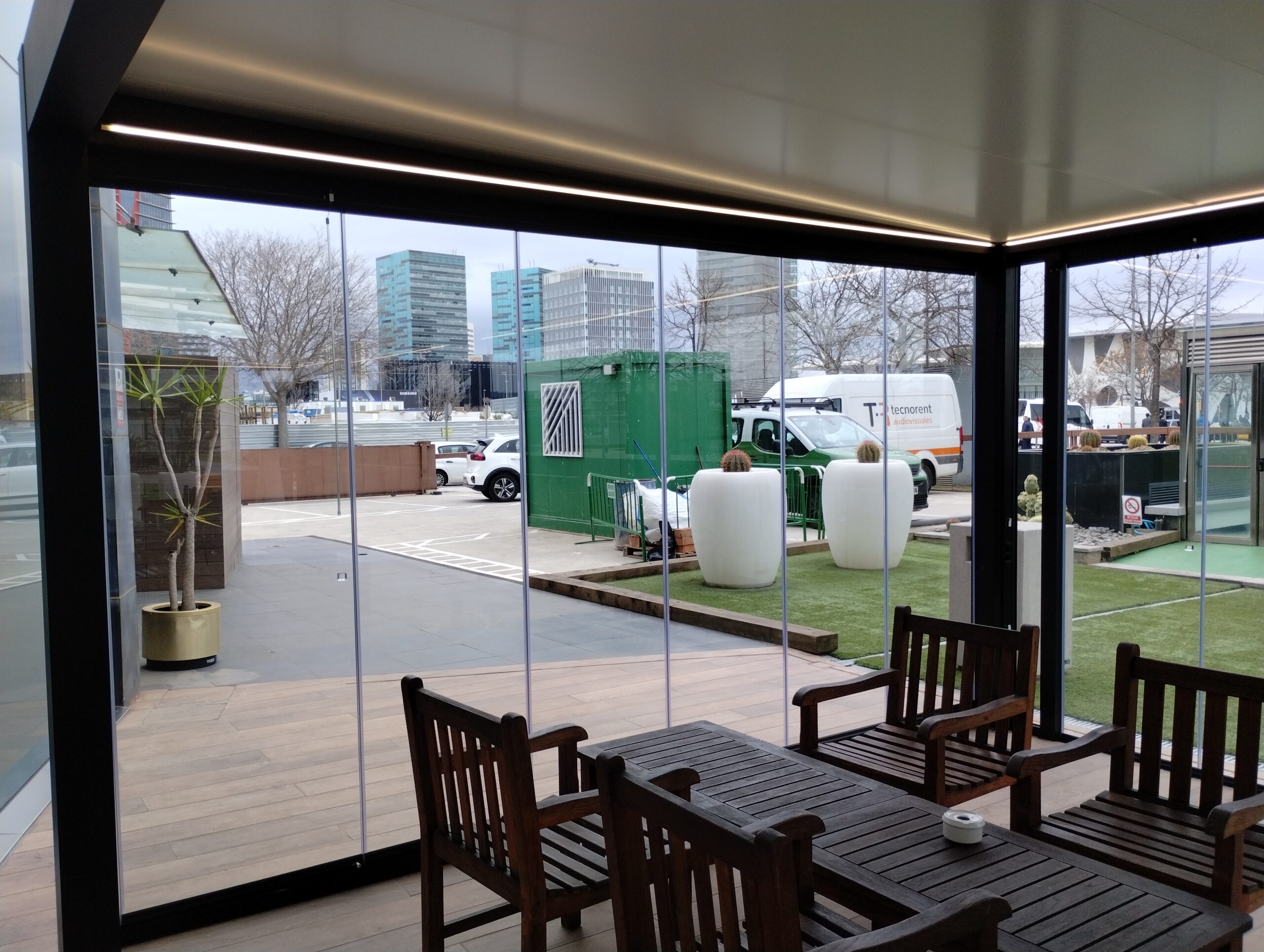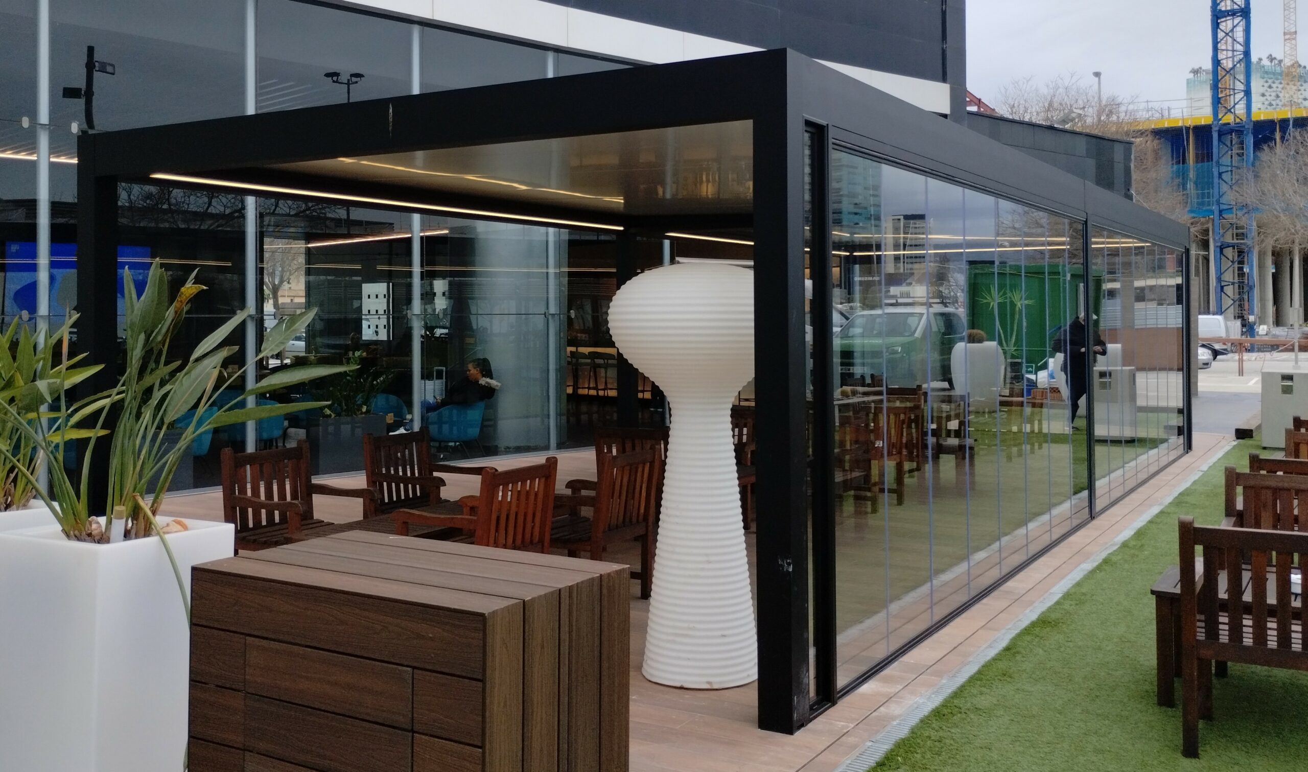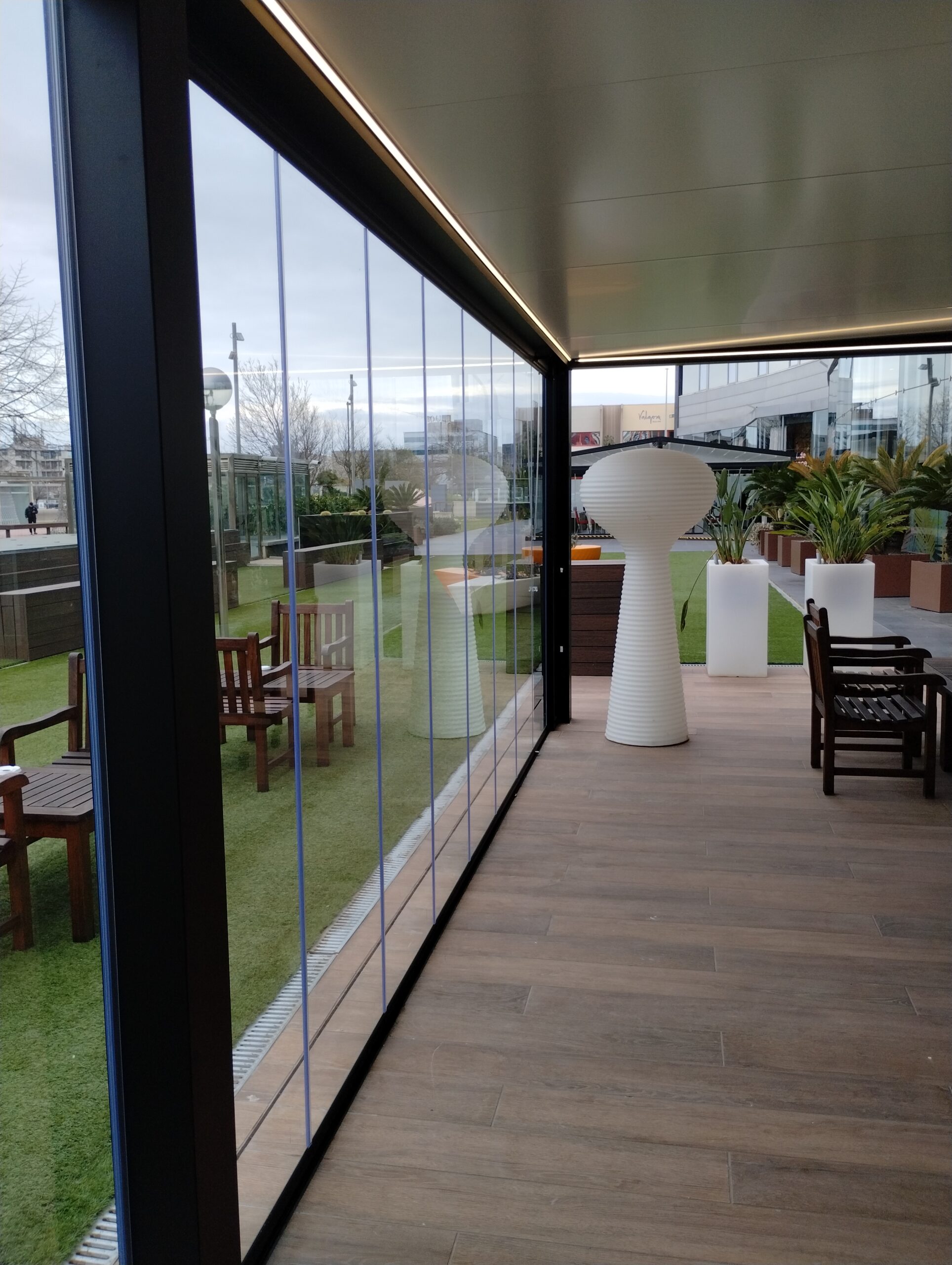 Conoce sus complementos en iluminación, calefacción, sonido, etc. y combínala con cortinas de cristal o cerramientos laterales,para aumentar el valor de la vivienda o negocio, creando un nuevo espacio atractivo que mejora la experiencia y conecta con el exterior.